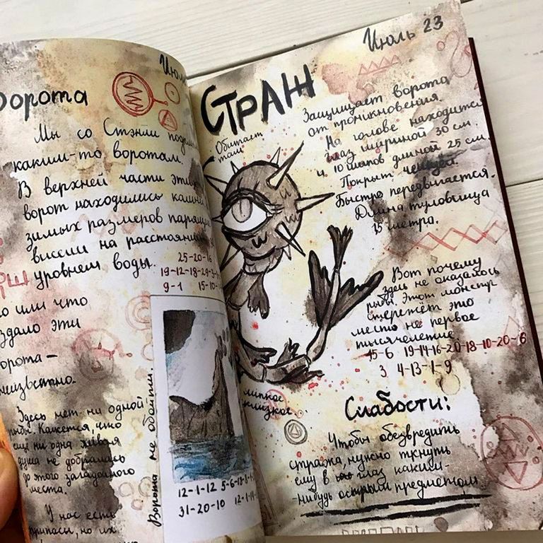 В Дневнике Диппера №4: 176 страницы с картинками, текстами, шифрами БЕЗ ЧИСТЫХ СТРАНИЦ.
