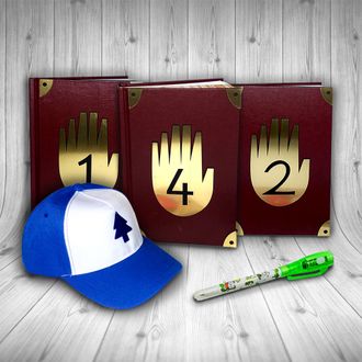 Дневники «Гравити Фолз» №1, №2, №4 на русском языке, Кепка Диппера + Ручка Шпион.