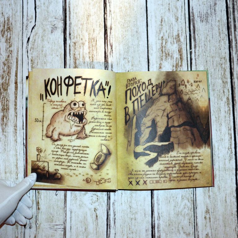В Книге Диппера №1: 160 стр. с цветными картинками, БЕЗ невидимых рисунков + 24 стр. для самостоятельного заполнения рисунками, историями, вашими приключениями!
